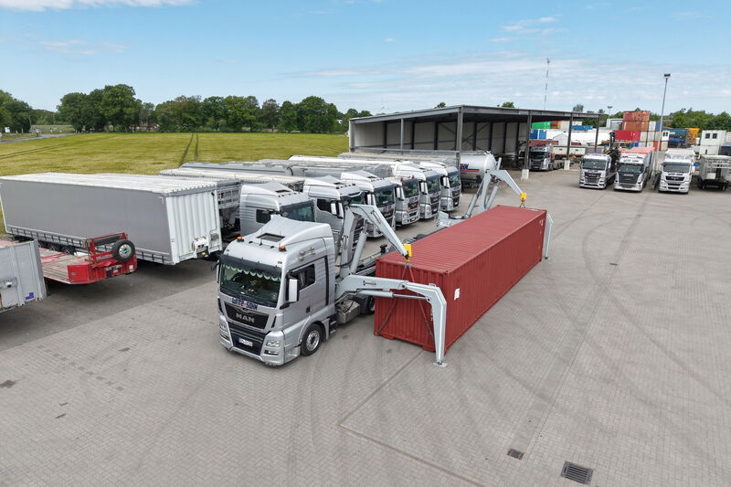Das Besondere: Der Seitenlader ist in der Lage, Container eigenständig auf der linken Fahrzeugseite zu laden und abzusetzen. Zudem ermöglicht er eine Verwiegung der Container gemäß SOLAS-Richtlinien.